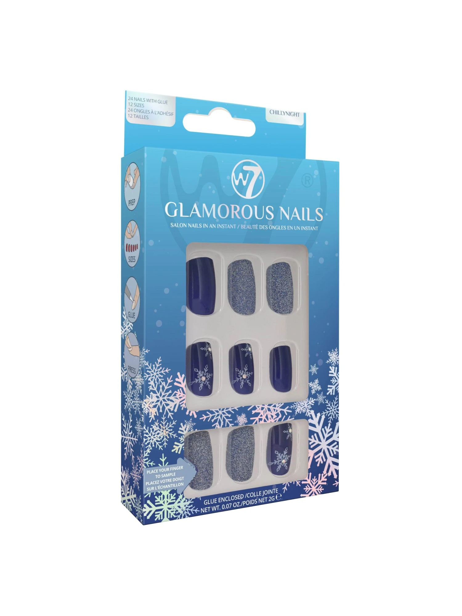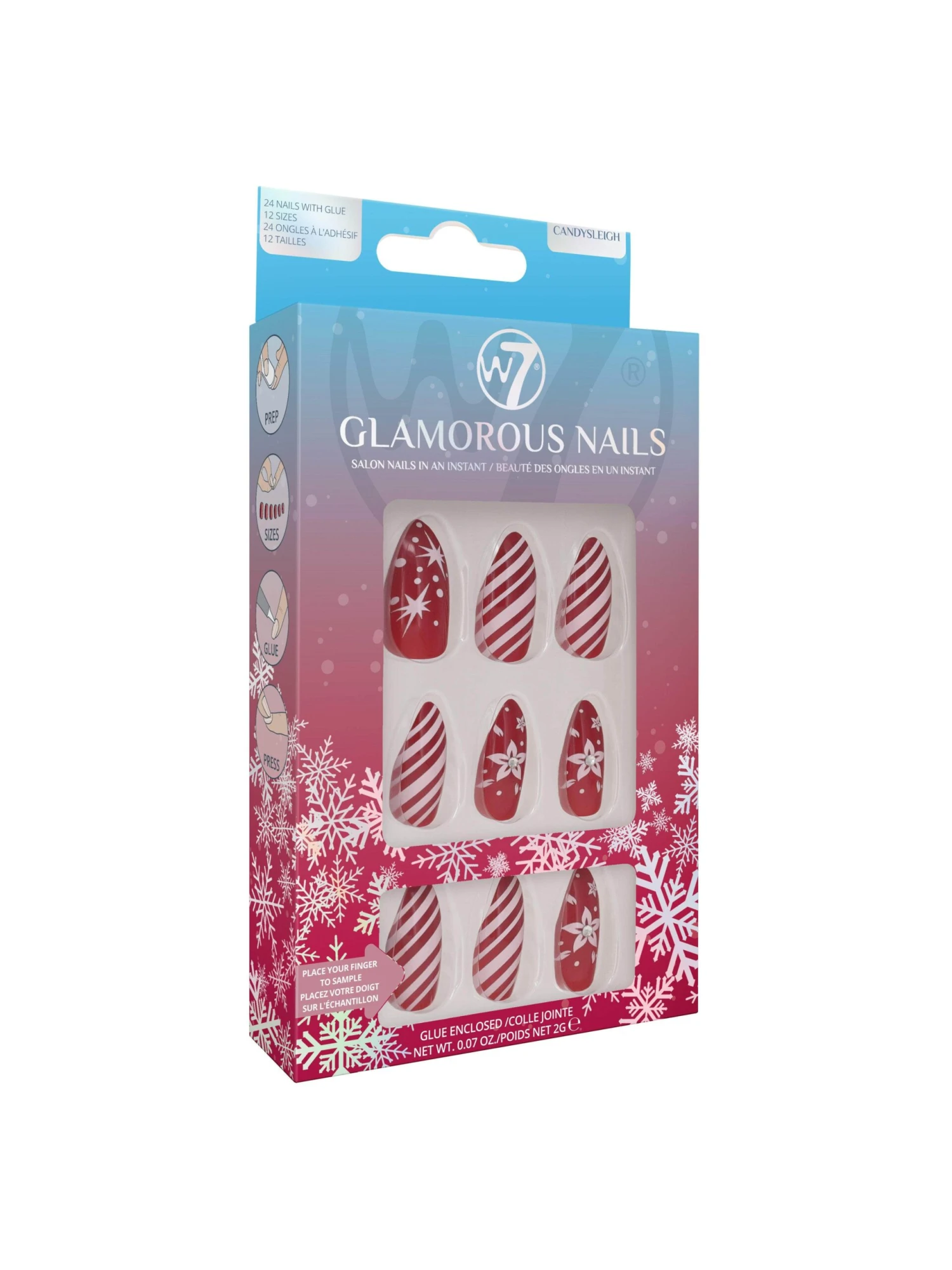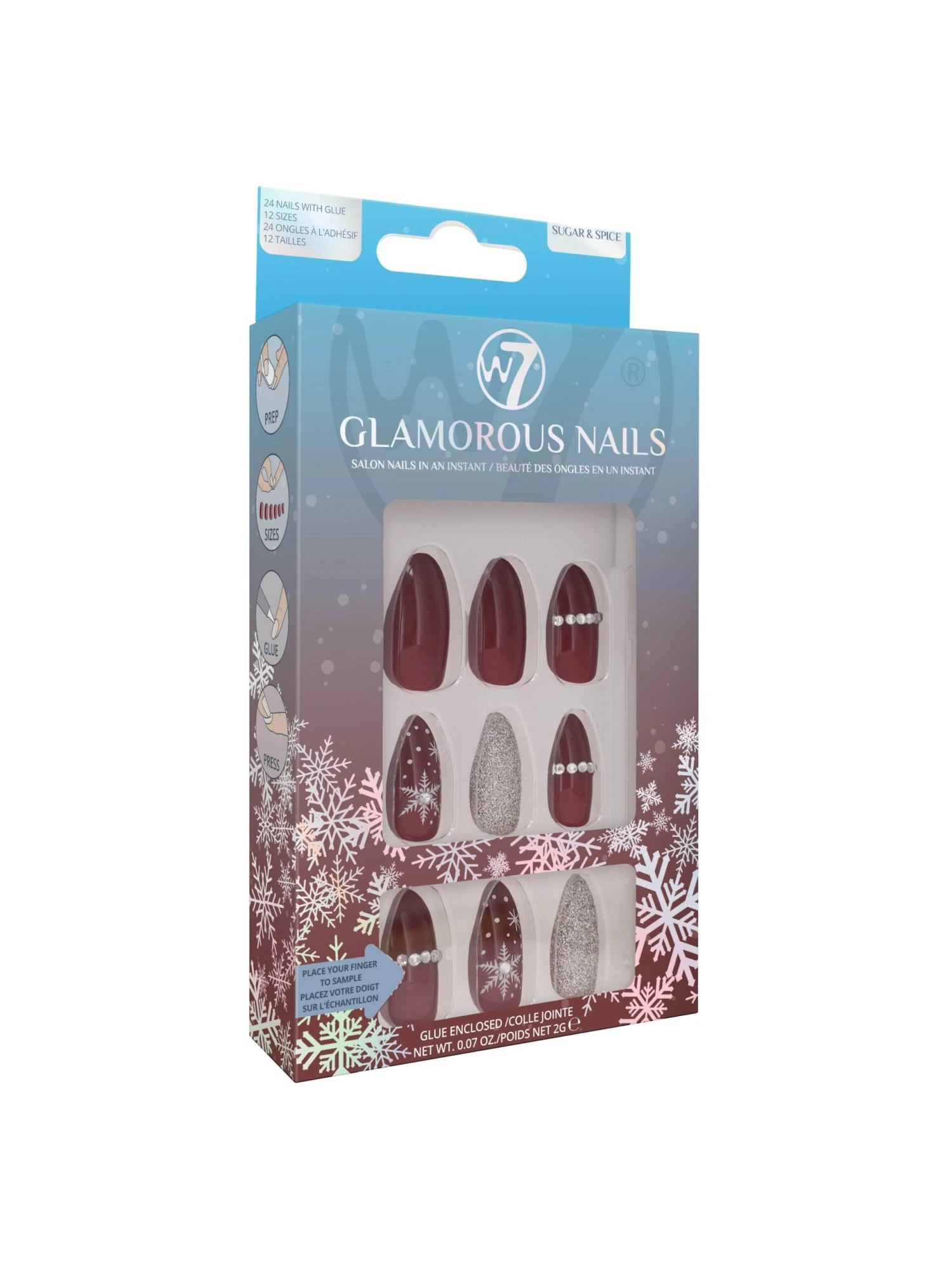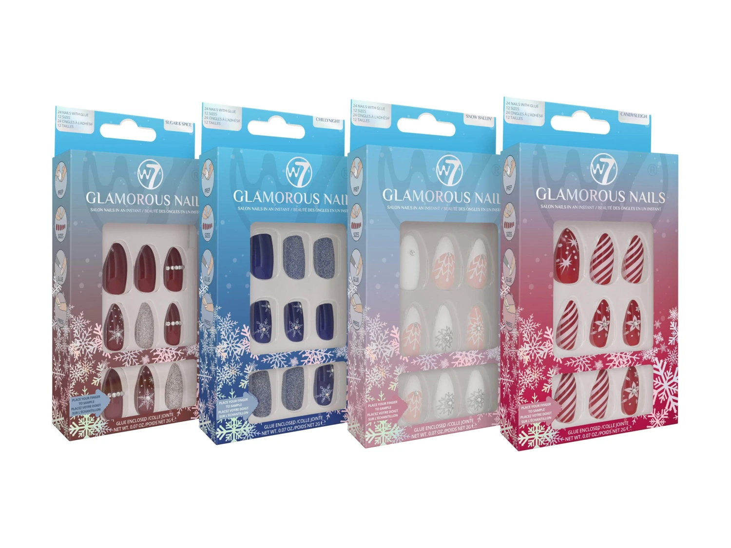 Get salon nails in an instant with W7’s Glamorous Nails! False nails in a variety of shapes and sizes to suit everyone, perfect for the festive season!