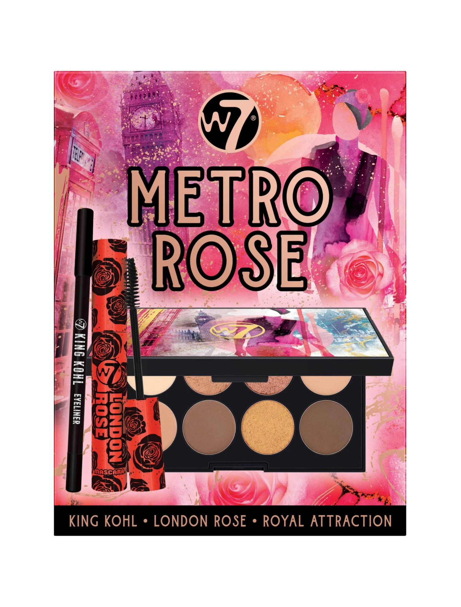 Create eyes to mesmerise using the essential eye-makeup products in the Metro Rose Gift Set! Go from day to night with these golden shades and line and define with the liquid liner and rose-scented mascara!